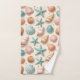 Sea shells and sea stars in blue and tan, against a light sandy background creates the perfect beach-themed towel set! Perfect for the beach house, or for anyone who loves the beach and ocean.