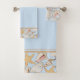 Matching set of three: washcloth; hand towel; and bath towel. Perfect set for a beach and shell themed bathroom.