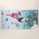 Energetically Enhanced Fantasy Whimsical Cute Girly Chic Under the Sea / at the Beach / Ocean Nautical BEACH TOWEL featuring a colourful Sweet SEA TURTLE with a Unicorn twist and a very GLAMOROUS mythical MERMAID.