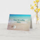 Beach scene birthday (or any occasion) card with big starfish / sea star on the beach. Oversized, folded greeting has blue shadow text on front and inside. Personalize with the recipient's name, and create your own message inside, where the beach scene continues with a junonia shell on the sand.