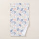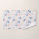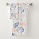 Pink gold and navy blue seashell pattern with a collection of different nautical shells on a white background.