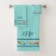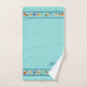 This towel set is designed with a border of shells & stripes on an aqua (sea foam blue) background. Use the Personalize option to add your own initials or blank it out for a generic towel set. Use the Customize option to change the font &/or reposition the text if needed. See my store for other color combinations of this design and coordinating bathroom decor.