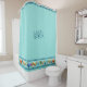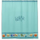 This shower curtain is designed with a bottom border of shells & stripes & 1 row of stripes at the top. Use the Personalise option to add your own initials or blank it out for a generic shower curtain. Use the Customise option to change the font &/or reposition the text if needed. See my store for other colour combinations of this design and coordinating bathroom decor.