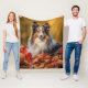 Embrace the rustic charm of Autumn with our stunning blanket showcasing an adorable Shetland Sheepdog in a harvest field as the sun sets in the background.