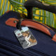 Keep track of your suitcase with this suitcase tag featuring a cartoon themed sheltie ready to head out on an adventure.