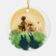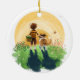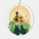 Sheltie Dog and Boy Walk into Sunset Ceramic Ornament