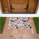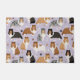 Cute Shetland Sheepdog dogs sit and stand and rollover with sable, tri-color, merle and white coats with scattered dog bones and pawprints pattern.