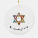 Add your family name or text of your choosing to the back of the Shema ornament. The multi-colour Star of David ornament is a great gift for a bar mitzvah or other occasion.