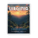 Capture the serene beauty of Shenandoah National Park with this stunning poster. Featuring a breathtaking sunset over the Blue Ridge Mountains, lush pine trees, and hikers enjoying the tranquil scenery.