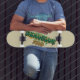 This fun grafitti-like skateboard design comes with the green and orange "Shenanigans Squad" text and it is made for St. Patrick's Day celebration.