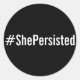 #ShePersisted, white text on black stickers