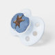 Fun blue baby pacifier with cute graphics of a bronze looking sheriff's badge, against a blue chequered background. Graphic text on the shield reads SHERIFF. Great gift idea for the new baby boy.