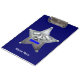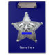 This custom dark blue clipboard is decorated with a Sheriff badge and can be customised with a name.