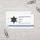 This design features a police badge with a thin blue line stripe. Customise with the name, position, and contact information of the law enforcement officer, sheriff, captain, chief or any employee working at the police department. The solid white background on the back allows an extra space for an officer to write a small note if needed.