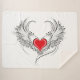 Artistically painted red heart with angel wings grey, decorated with black smooth contour.
