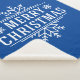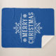 This warm and cosy Sherpa blanket is shown with a large Merry Christmas snowflake print in frosted White over a Sapphire Blue background colour.
