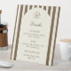 Birthday drinks menu sign featuring a hand-drawn coffee mug paired with elegant script and serif fonts in which your personalized information is written. The background is brown stripes on a light background. Check out our store for more items from this collection.
