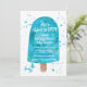 She's about to POP blue popsicle watercolor baby shower invitation is perfect for warm summer days. The back features a watercolor splash pattern. All details except for the heading 'She's about to POP' is customisable.