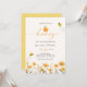 Bright honey bee themed bridal shower invitation featuring wildflower and bee nest design.