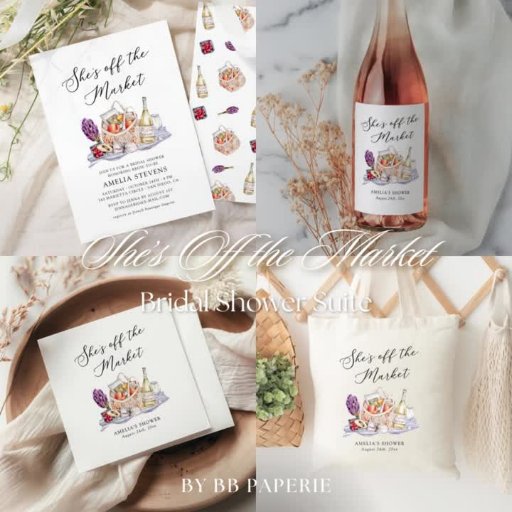 Introducing our charming "She's Off the Market" bridal shower collection! This delightful suite features a playful farmer's market theme, perfect for celebrating the bride-to-be. With its whimsical fruit, wine and food illustrations along with a cosy picnic design, this suite sets the tone for a fun and stylish gathering. This suite captures the joy and freshness of new beginnings, making it an ideal choice for a memorable bridal shower.