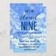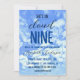 She's On Cloud Nine! Bachelorette weekend invitation featuring fluffy white clouds against a crisp blue sky.
