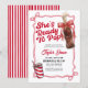 This editable soda pop baby shower invitation features a charming retro theme with a hand-drawn red coquette bow, making it the perfect "She's Ready to Pop" announcement for your upcoming celebration.