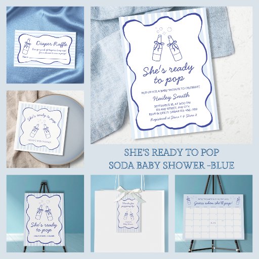She's Ready to Pop Soda Baby Shower – Blue Designed by Laura Herranen