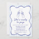 Invite guests to celebrate with this playful She’s Ready to Pop baby shower invitation. The design features cute hand-drawn soda bottles tied with little bows, a soft wavy frame, and a striped background in light blue and white. A handwritten-style font adds a warm, cheerful touch to the artwork. Perfect for a fun, lighthearted baby shower theme and easy to personalize with your event details.