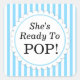 She's Ready to Pop Baby Shower Sticker with stripes. Customise with the mother-to-be's name! Perfect for baby shower favours, treats, and more.