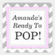 She's Ready to Pop Baby Shower Sticker with chevron design. Customise with the mother-to-be's name! Perfect for baby shower favours, treats, and more.