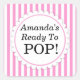 She's Ready to Pop Baby Shower Sticker with stripes.  Customise with the mother-to-be's name! Perfect for baby shower favours, treats, and more.