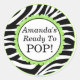 She's Ready to Pop, Zebra Print Baby Shower Classic Round Sticker