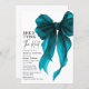Make a stylish first impression with this She’s Tying The Knot QR Code Bridal Shower Invitation, designed for modern brides who love timeless elegance. Showcasing a coquette dark turquoise watercolor bow paired with an elegant turquoise and white theme, this invitation blends romantic femininity with chic minimalism.