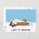 Sheltie Holiday Postcard. “Let it Snow!” Text can be personalised with your own message. Cute drawing of a Shetland Sheepdog rolling in the snow with snowflakes coming down. A perfect Christmas postcard for pet services to customise and send to customers, friends and clients. Great for veterinarians, pet sitters and dog walkers. Visit Jenn’s Doodle World for even more products with this happy dog design, as well as more dog breed Xmas cards and gifts.