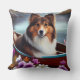 Shetland Sheepdog on a Paddle: A Scenic Adventure Cushion