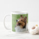 A lovely head profile of a Sheltie graces this mug. It will look lovely on your desk.
