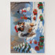 Shetland Sheepdog Running Snow With Christmas Hat Jigsaw Puzzle