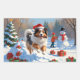 A cheerful Shetland Sheepdog runs playfully through the snowy winter scene, wearing a festive red Christmas hat. This delightful design highlights the breed’s fluffy coat, intelligent eyes, and lively personality while capturing the warmth and joy of the holiday season. A heartwarming winter moment full of festive charm.