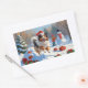Shetland Sheepdog Running Snow With Christmas Hat Rectangular Sticker