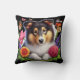Shetland Sheepdog with Flowers and Butterflies Cushion