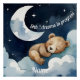 This personalised teddy bear sleep on the moon poster is the perfect addition to any nursery or child's bedroom. The adorable image of a baby bear sleeping in the clouds is sure to bring a sense of peace and tranquillity to the room. With editable text that says "Shh...dreams in progress" and a place for the baby's name, this poster can be customised to make it truly unique and special for your little one. Make bedtime more magical with this charming poster that will inspire sweet dreams every night.