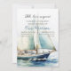 Surprise birthday party invitation features watercolor elegant sailboat whispering on the ocean with modern and script typography.