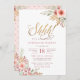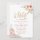 Get ready for a surprise birthday party with this gorgeous design. This invitation features watercolor rose bouquets in the top right and bottom left corners, elegant gold glitter hand-lettering style script for the "Shhh!" with a pink polka dot and floral pattern on the back. Add your own details by clicking the "personalise this template" button and typing into the text boxes and remember, keep quiet!