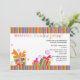 A festive design with colourful top and bottom striped borders and birthday presents wrapped in coordinating gift wrap. The words "Shh...It's a Surprise" are pre-printed. The card is easy to customise with your wording, font, font colour and choice of six paper types.