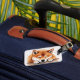 I was happy with the acrylic tag but it came with a thin leather strap to attach the tag to luggage (like a cat collar). I replaced the strap with a metal ring off of a key ring as the leather strap would come undone or break easily as luggage is sometimes handled without much care by airlines. Printing is great. Colours and positioning of the design I put on the tag were perfect. Very pleased.