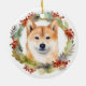 Shiba Inu Christmas Wreath Festive Pup Ceramic Ornament