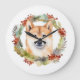 Shiba Inu Christmas Wreath Festive Pup Large Clock