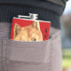 The flask itself is fine. It’s a cheap flask, obviously bought in bulk, however am prepared to overlook that. Given that it is a personalized item, I would have liked to have seen gift boxing instead of the generic packaging. Terrible printing, and/or quality. It’s a cheap, tacky vinyl. It is not cut straight and is also applied in a way that it is overhanging the bottom, causing the glue to catch on items and it will eventually roll and tear, damaging the wrap.