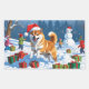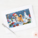 Shiba Inu Running in Snow with Christmas Hat Rectangular Sticker