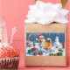 A spirited Shiba Inu runs joyfully through the snowy winter scene, wearing a festive red Christmas hat. This charming design highlights the breed’s foxlike face, curled tail, and confident personality while capturing the warmth and joy of the holiday season. A delightful winter moment full of festive cheer.